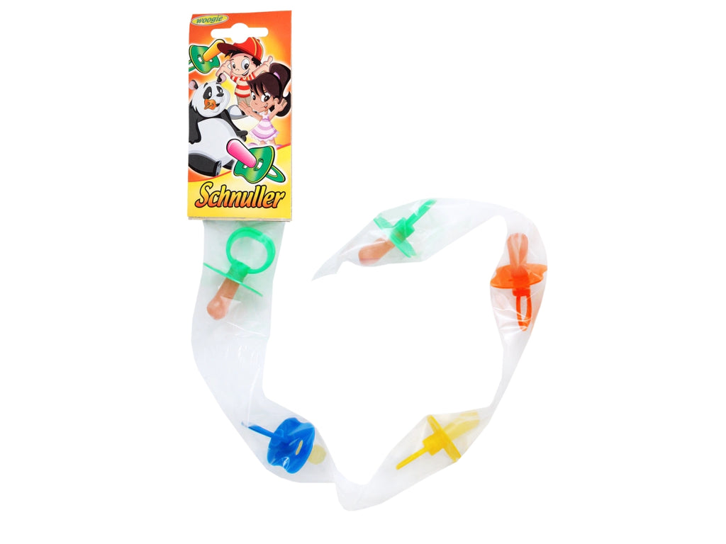 Caramelle dure ciucci. 5 coloratissimi ciucci di zucchero in una pratica confezione da appendere.