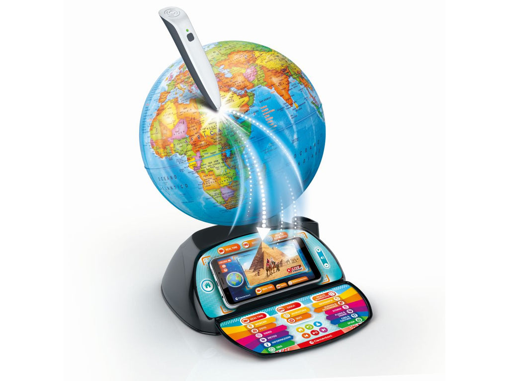 Il nuovo esploramondo real time è ricco di informazioni e curiosità per apprendere la geografia in modo innovativo e divertente! con la penna wireless scopri tutto su: continenti, capitali, superficie, flora, fauna, inni nazionali, lingue, storia, tipicità , curiosità , piatti tipici e distanze fra capitali e punti d'interesse. basta scaricare l'app per conoscere in tempo reale cosa accade nel mondo attraverso a video, foto e informazioni sempre aggiornate! per esplorare, scoprire e imparare informazioni e curiosità di ogni paese: 59 luoghi di interesse e 195 paesi, più di 5 ore di contenuti e 28 attività di gioco! questo gioco educativo unisce il fascino del classico mappamondo allinterattività delle nuove tecnologie. la cartina specifica della nazione si arricchisce di informazioni e curiosità per poter svelare le caratteristiche geografiche più importanti da apprendere. con la modalità "avventure", scegli il mezzo di trasporto più avvincente tra nave, aereo e macchina. segui gli indi zi e rispondi ai quiz rompicapo. sviluppa capacità logiche e di osservazione, conoscenza e comprensione del mondo, competenze tecnologiche, creatività e memoria.