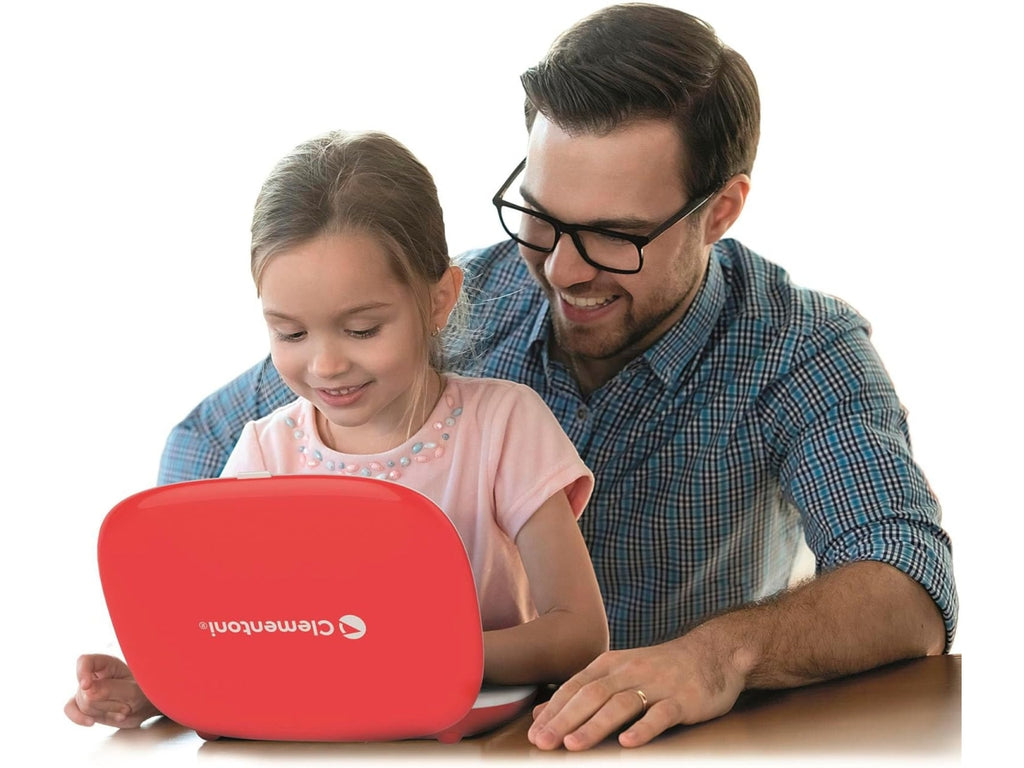 Laptop educativo portatile con 35 attività di apprendimento che avvicinano al mondo digitale sviluppando linguistica, logico-matematica, memoria e creatività, con schermo LCD animato e tastiera interattiva.