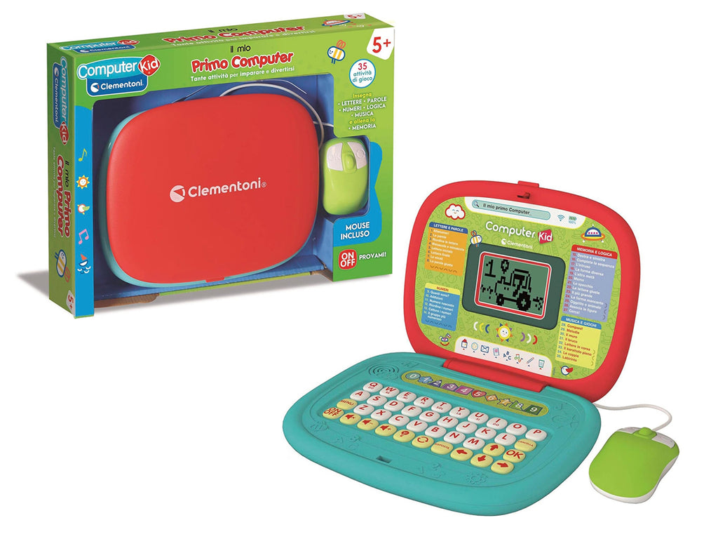 Gioco educativo ideato, progettato e sviluppato in Italia, adatto per bambini dai 5 anni in su, include 1 laptop con 35 attività interattive, tastiera con 50 pulsanti e mouse. Una gamma di computer educativi per bambini sullo stile di un vero laptop da portare con sé, per imparare ovunque esercitandosi in vari argomenti, come lettere, matematica, logica, musica e le basi della lingua inglese.