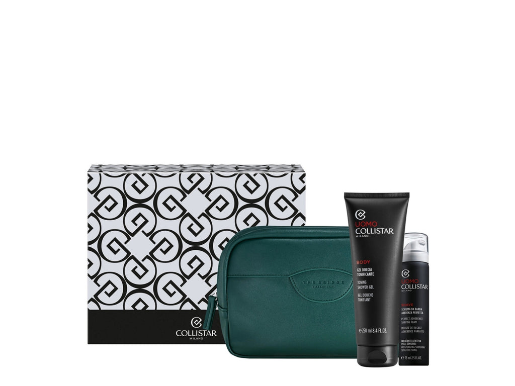 The Bridge, eccellenza della pelletteria italiana, firma le esclusive Beauty-Bag dei cofanetti regalo Collistar. Le trousse sono abbinate ai prodotti Collistar più amati: scegli la tua combinazione tra le proposte delle linee Trucco, Viso, Corpo e Uomo. Le Beauty-Bag hanno un design elegante ed essenziale, impreziosito dallâiconico maxi-logo The Bridge sul fronte, richiamo allâheritage del brand.Una formula in gel arricchita di preziosi agenti emollienti che deterge delicatamente il corpo, tonificando la pelle. Grazie allâAcqua distillata di Bergamotto Italiano dona freschezza, energia e vitalità . Frizionato sul corpo durante la doccia, il gel si trasforma in soffice schiuma ed esercita un intenso effetto tonificante e rinvigorente. Specifica per pelli sensibili, assicura: risultato impeccabile e aderenza perfetta per lâintera durata della rasatura. LâEstratto di Opuntia iperfermentato di origine italiana idrata e calma rossori e irritazioni. LâOlio di Kiwi italiano protegge e nutre lâepidermide.