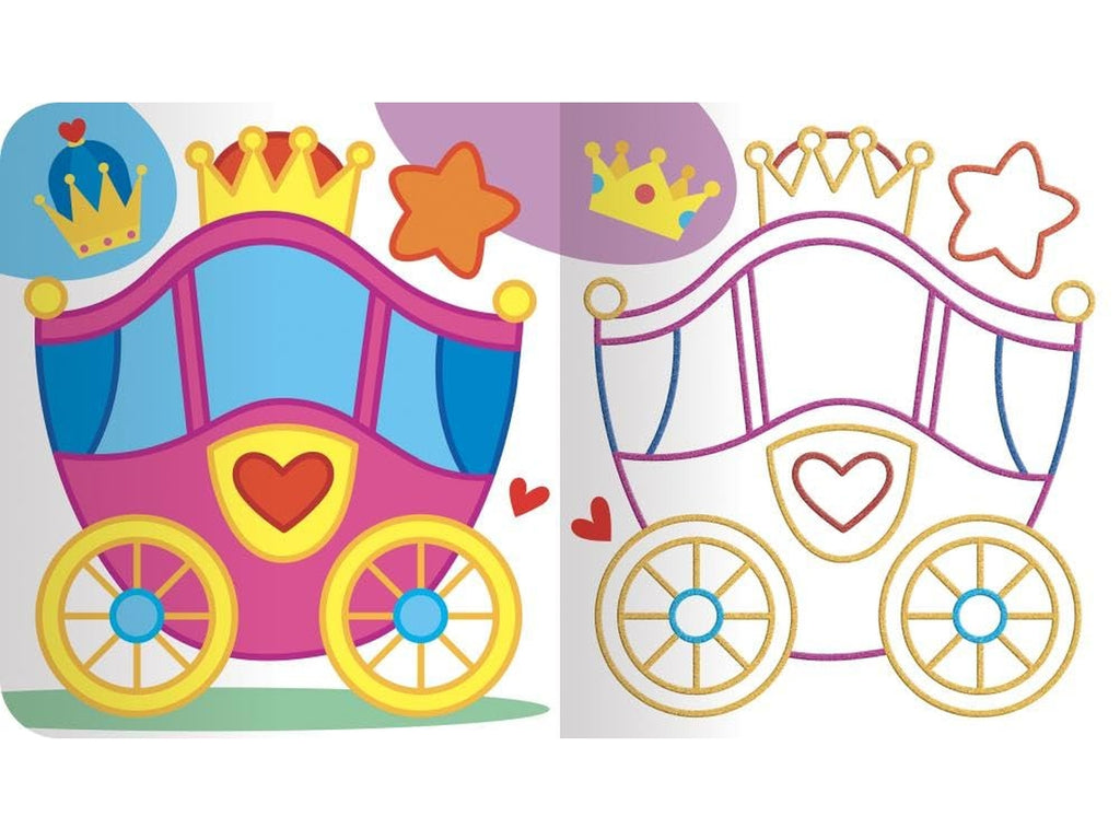 Un album da portare sempre con sé, dedicato ai più piccoli che si cimentano per le prime volte in attività di coloring: nella pagina di sinistra il modello, in quella di destra il soggetto da colorare con bordi glitterati e scintillanti a rilievo per facilitare bambini e bambine nell'attività e potenziare la motricità fine. Età di lettura: da 3 anni.