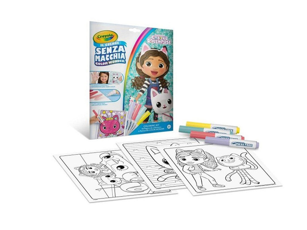 18 pagine sciolte da colorare tematizzate con le avventure degli splendidi personaggi di Gabby’s Dollhouse e 4 pennarelli senza macchia Color Wonder. Ancora più divertimento! Passando il pennarello sulla carta appaiono dei disegni nascosti. Nuova confezione richiudibile: pratica e ideale da portare con sé.