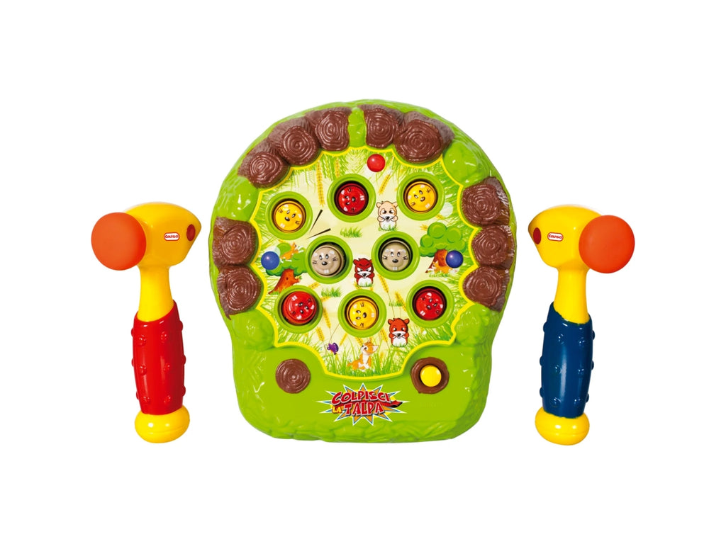 Se con il martelletto riuscirai a colpire le talpe dispettose appena spuntano, tutto si illuminerà e suonerà! Gioco per sviluppare la manualità, le percezioni uditive e visive dei bambini.
