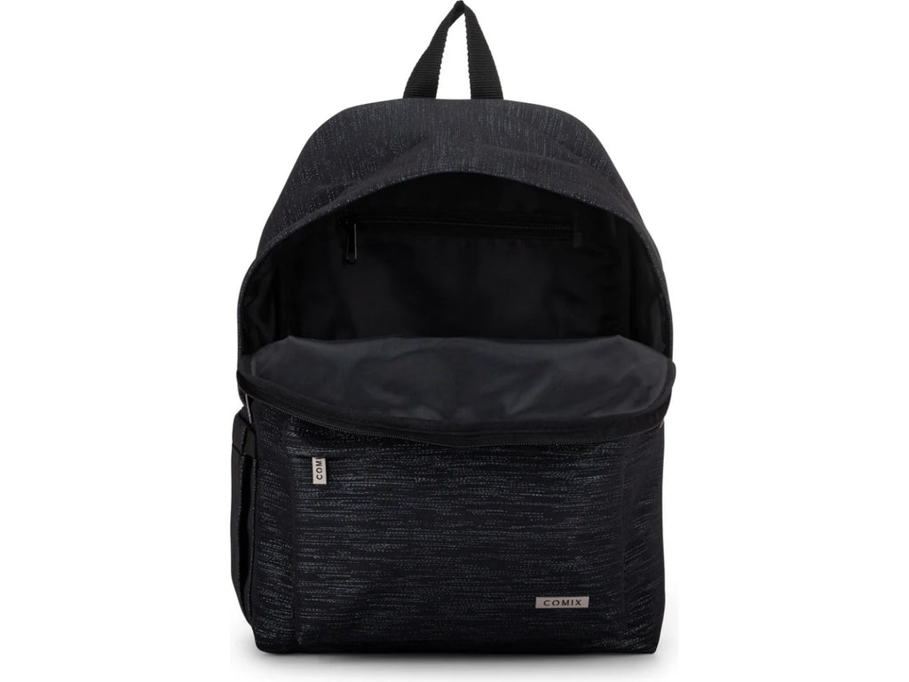 Lo zaino Comix Lurex è perfetto per ragazzi che vogliono essere organizzati e alla moda durante l'anno scolastico. Con il suo ampio scomparto principale potrai facilmente riporre i tuoi libri, quaderni e tutto ciò di cui hai bisogno per la scuola. La tasca frontale e la tasca laterale ti permettono di avere a portata di mano gli oggetti più piccoli. La chiusura a zip garantisce la massima sicurezza dei tuoi effetti personali. Gli spallacci regolabili ti permettono di adattare lo zaino alla tua altezza, per una maggiore comodità. Con le sue dimensioni di 30x40Hx17 cm e una capacità di 29 L avrai spazio sufficiente per tutto il necessario.