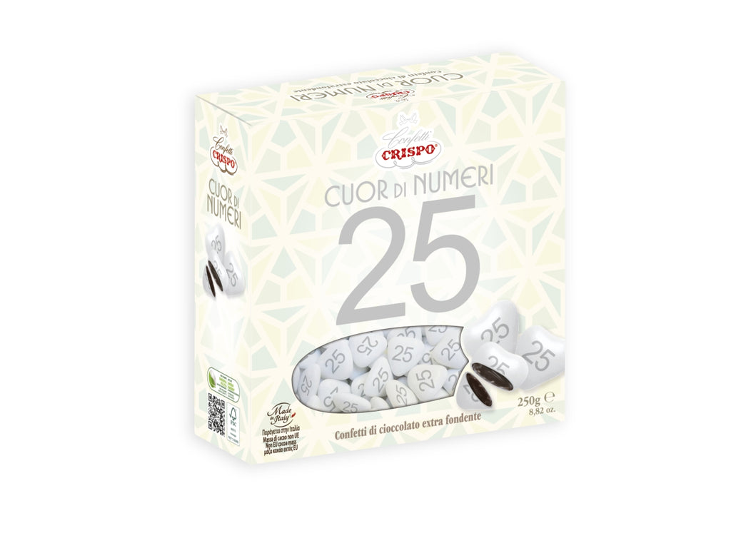 Cuor di Numeri è la linea di confetti a forma di cuore realizzati con cioccolato extra fondente di alta qualità, avvolti da un sottile strato di zucchero e personalizzati con numeri eleganti. Confetti unici, pensati per celebrare con stile i momenti più speciali. Perfetti per compleanni, anniversari, eventi esclusivi o come dolce messaggio da regalare, questi confetti uniscono gusto intenso e raffinatezza estetica.