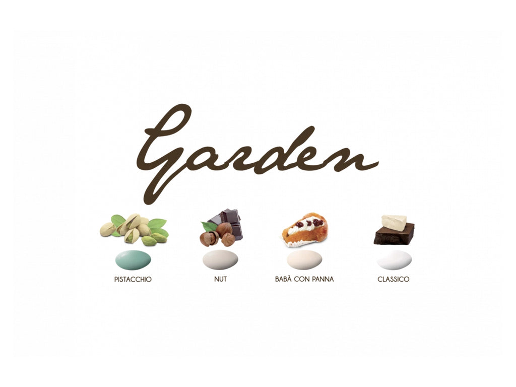 Maxtris Nuance Garden, confetti con mandorla tostata ricoperta di cioccolato (bianco, al latte, al latte e alle nocciole gianduia, fondente) ai gusti assortiti.