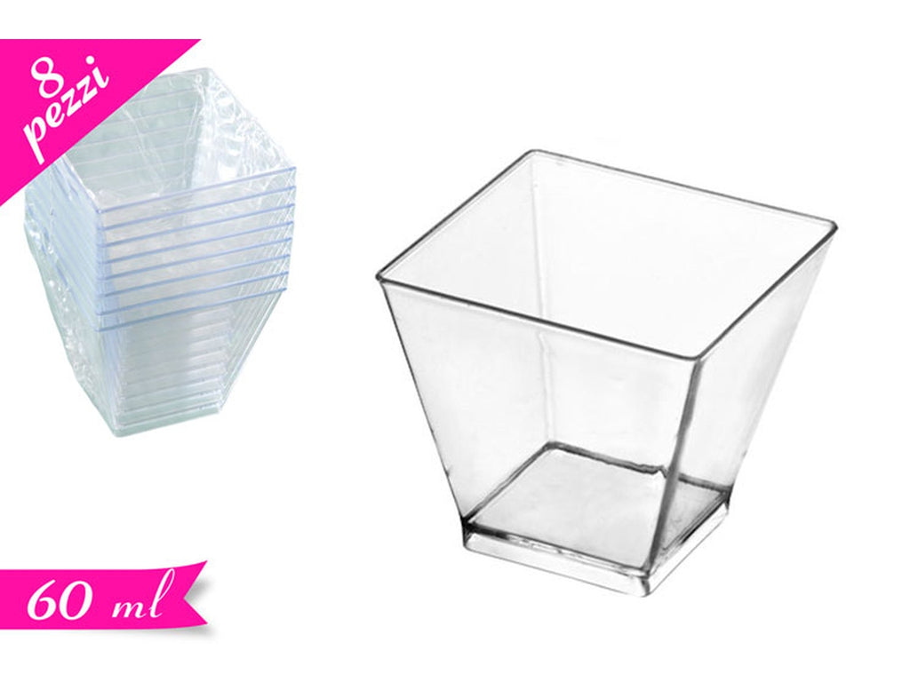 Confezione da 8 bicchierini riutilizzabili trasparenti