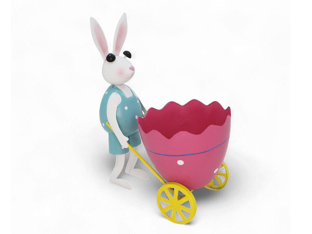 Coniglio in metallo con cariola uovo 23x12x25cm