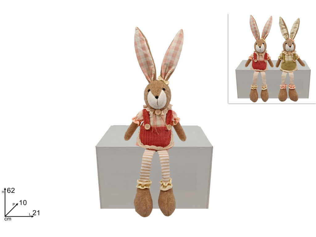 Coniglio seduto 62cm con vestito in 2 assortimenti