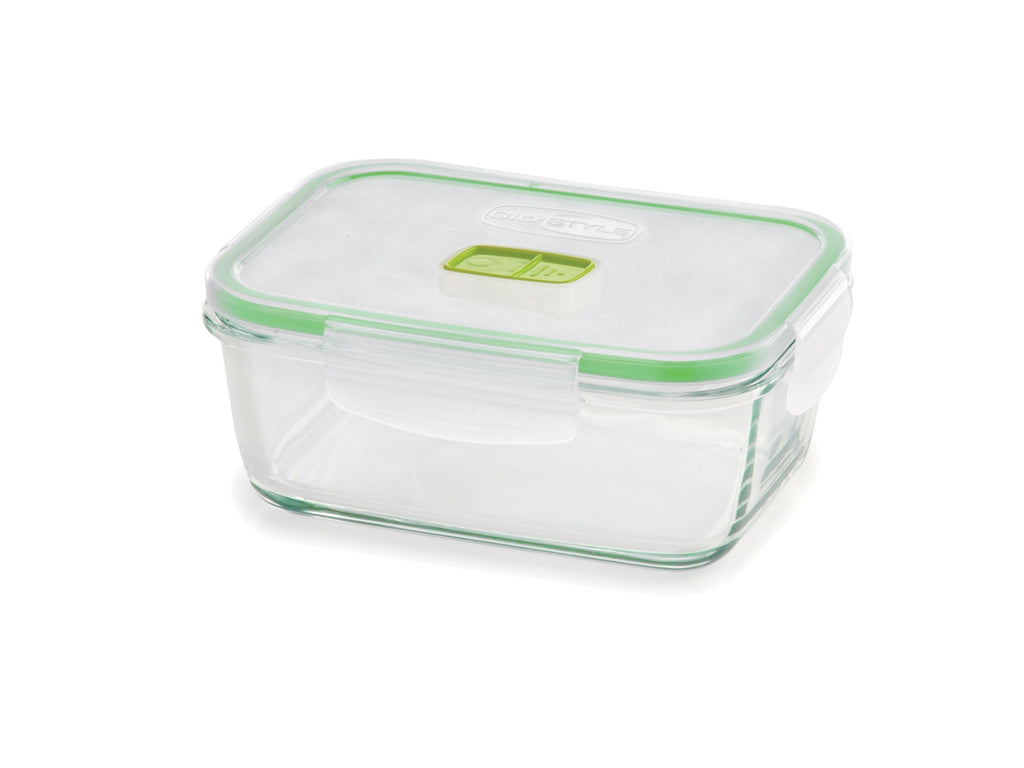 Contenitore per alimenti in vetro con capacità 0,38L, conserva a lungo la freschezza e il gusto dei cibi in frigorifero e congelatore. Il coperchio e il contenitore sono trasparenti così da vedere il contenuto all’interno. Utilizzabile nel microonde grazie alla valvola di sfiato del coperchio, che consente la fuoriuscita del vapore durante il riscaldamento del cibo. Il coperchio è facile da aprire e chiudere con 4 alette di chiusura del coperchio, ha una guarnizione in gomma che crea una forte tenuta e mantiene l’umidità fuori. Dimensioni (cm): 14,7x10,1x6,2.