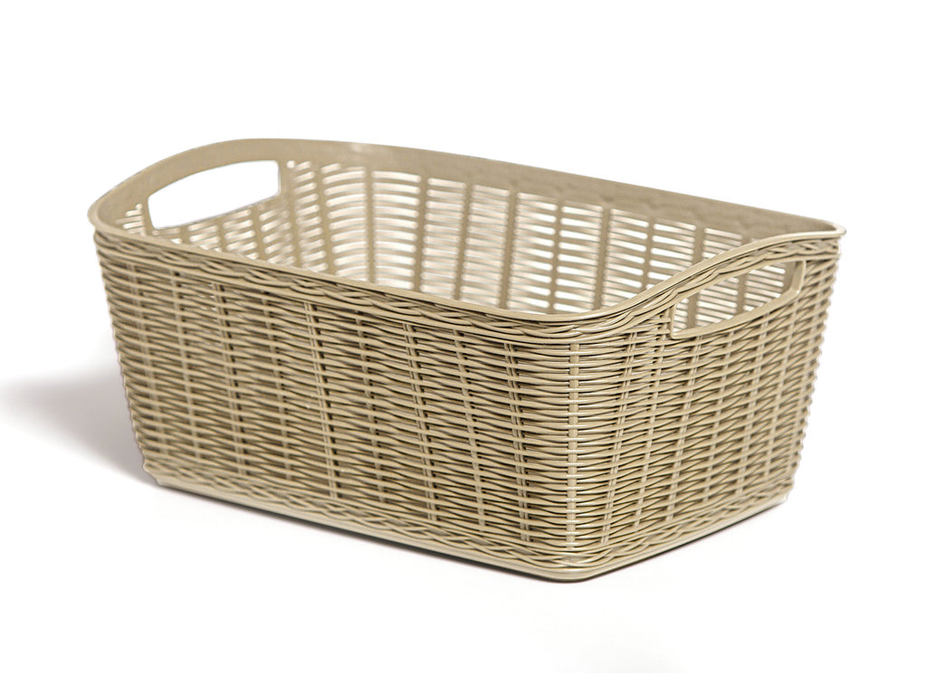 Contenitore portaoggetti che si fonde in modo armonioso sia con ambiente rustico che con ambiente moderno grazie al design simil paglia, richiamo ai materiali naturali, ma con la praticità  e la durevolezza della plastica. la sua versatilità  permette un ampio utilizzo in tutta la casa! in cucina può contenere pane e frutta, in bagno è ideale per organizzare profumi, creme e quant'altro, in giardino è utile per raccogliere piccole piante e oggetti da lavoro. idoneo anche alla conservazione degli alimenti. cm 31x21,5x13h