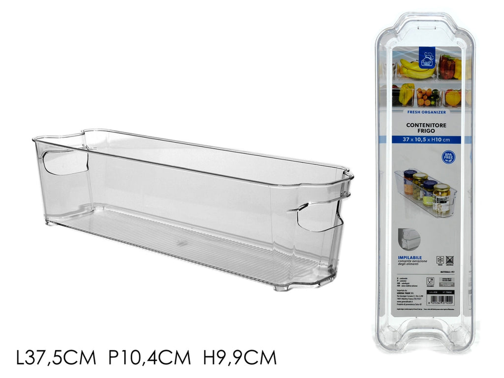 Organizza il tuo frigorifero in modo efficiente con il Contenitore Frigo Fresh Organizer! Impilabile e con un design che consente una migliore aerazione, questo contenitore mantiene i tuoi alimenti freschi più a lungo. Realizzato in polietilene tereftalato, una resina termoplastica della famiglia dei poliesteri, sicura per il contatto alimentare. Design che consente di risparmiare spazio nel frigorifero, mantenendo tutto ordinato! Non lavabile in lavastoviglie