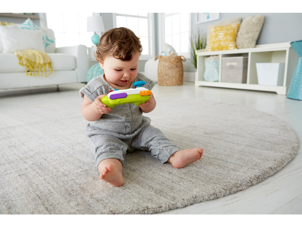 Neonati e bimbi piccoli possono divertirsi con il giocattolo Controller Gioca & Impara Ridi & Impara di Fisher-Price®. Questo finto controller per videogiochi è dotato di due modalità , divertenti attività pratiche e canzoni e frasi entusiasmanti che introducono numeri, forme, colori e molto altro per far giocare e imparare il tuo piccolo. Il design realistico del controller include un joystick mobile e tasti con numeri e lettere da premere per attivare luci, musica e suoni. Usa il pulsante a forma di globo per selezionare la lingua: italiano, spagnolo castigliano, portoghese o inglese