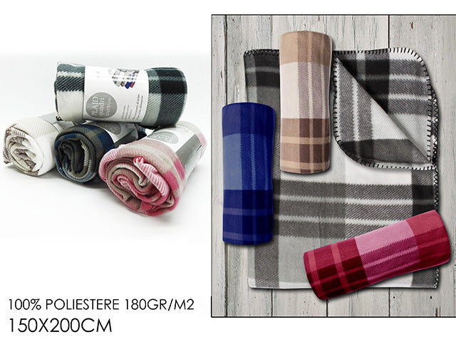 Coperta in pile a quadri misura 150x200cm in 4 colori assortiti