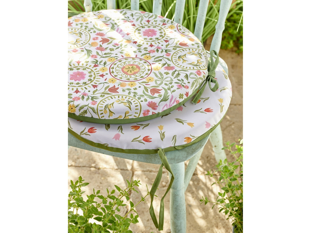 I delicati raggi del sole riscaldano un accogliente spazio esterno dove la convivialità è al centro dell'attenzione. Questo cuscino rotondo per sedia di Outdoor Living aggiunge colore e comfort a qualsiasi sedia da giardino o da balcone. Realizzato in poliestere riciclato con un giocoso motivo floreale in calde tonalità multicolore, irradia un'atmosfera naturale e invitante. La finitura per esterni garantisce stile e resistenza, perfetta per uno stile outdoor contemporaneo e vivace.
