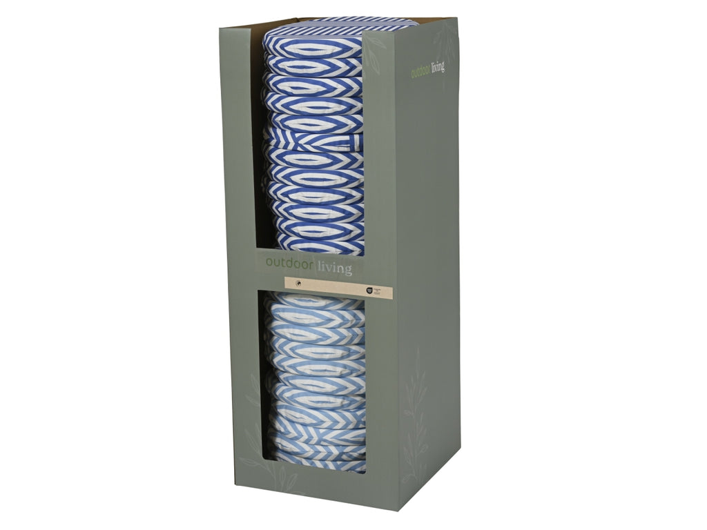 Un pomeriggio estivo ricco di momenti di relax si arricchisce di comfort e colore grazie a questo grazioso cuscino Outdoor Living. Questo cuscino rotondo con una fresca stampa a righe dona un tocco di intimità visiva a qualsiasi sedia da giardino o da balcone. Il robusto materiale in poliestere, realizzato con tessuti riciclati, unisce la durevolezza a un design contemporaneo in diverse tonalità di blu e bianco, rendendolo perfetto per un ambiente esterno moderno.