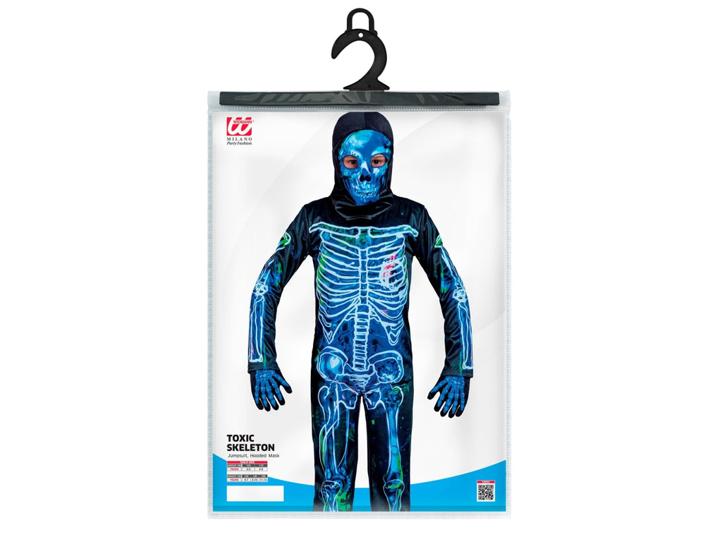 Costume scheletro tossico 104cm 2-3anni composto da tuta e maschera con cappuccio