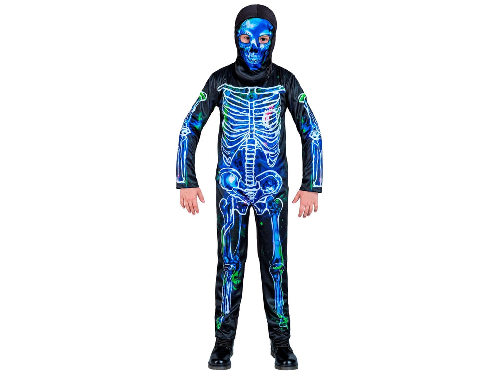 Costume scheletro tossico 128cm 5-7anni composto da tuta e maschera con cappuccio