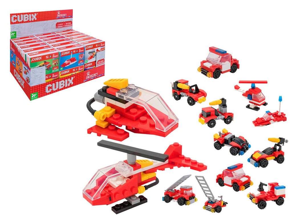 Costruzioni mezzi dei pompieri. segui le istruzioni, incastra i mattoncini e costruisci i mezzi dei pompieri per tenere al sicuro la città  dagli incendi. disponibili 6 mezzi assortiti. i mattoncini cubix sono compatibili con le principali marche di costruzioni in plastica. età  consigliata 4 anni +.
