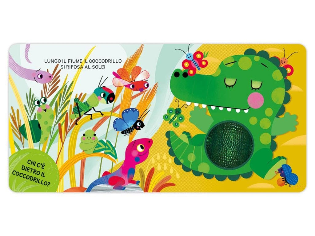 Il pesce e il cavalluccio marino nuotano allegri nel mare, il dinosauro mangia le foglie degli alberi e il coccodrillo si rilassa in riva al fiume… Gli animali con le squame sono davvero particolari! Un libro tocca e senti, piccolo e coloratissimo, che invita i bambini a scoprire tante curiosità sugli animali e a toccare il loro soffice manto. Le frasi semplici e le domande stimolanti renderanno i primi passi nel meraviglioso mondo degli animali un'avventura divertente e coinvolgente. Età di lettura: da 1 anno.