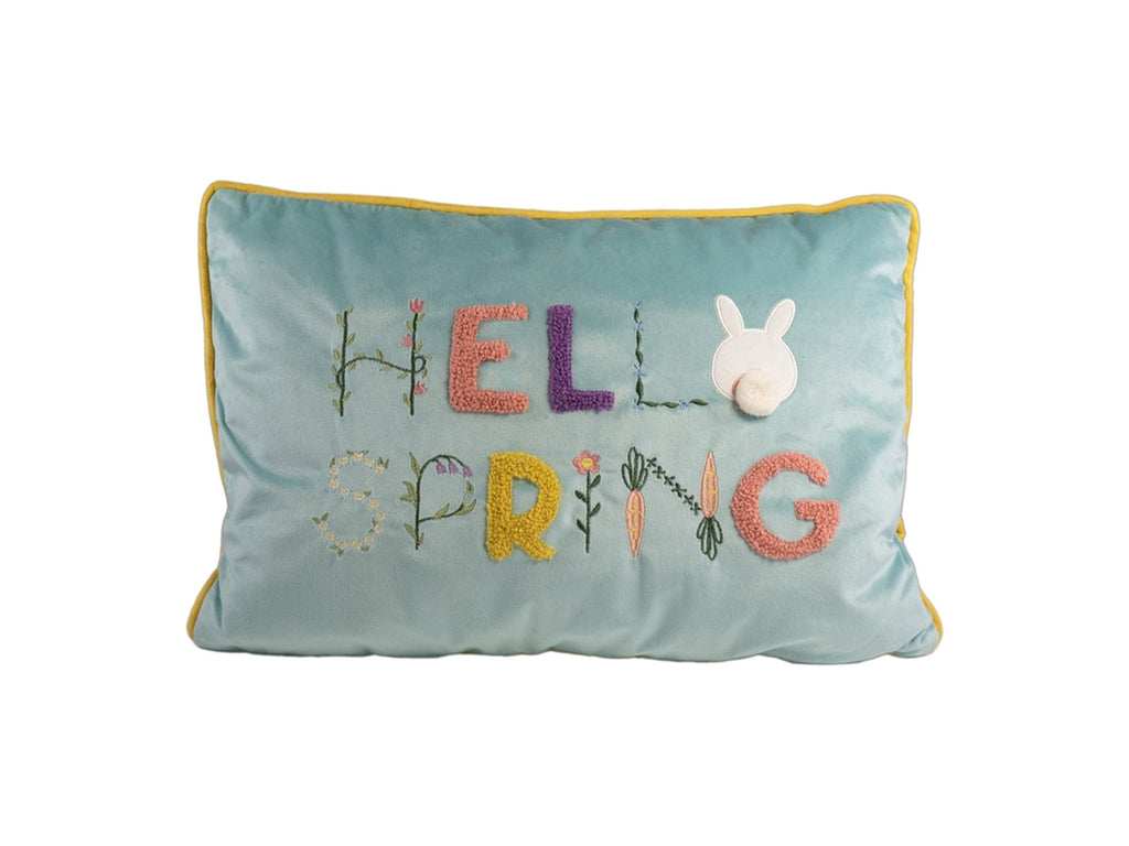 Cuscino con scritta hello spring 33x48cm poliestere di colore celeste