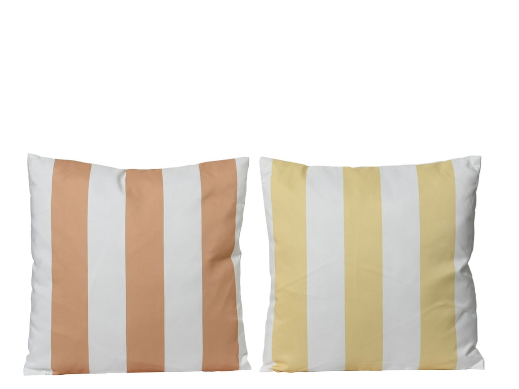 Completa un pomeriggio estivo con questi cuscini d'atmosfera, perfetti per panchine da giardino o sedie da balcone. Questo cuscino quadrato Outdoor Living con un moderno motivo a righe aggiunge un tocco vivace a qualsiasi spazio esterno. Realizzato in resistente poliestere con un design colorato su una base idrorepellente e riciclata, trasmette comfort e stile.