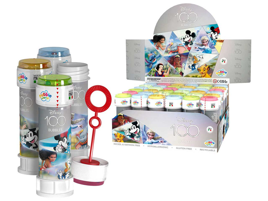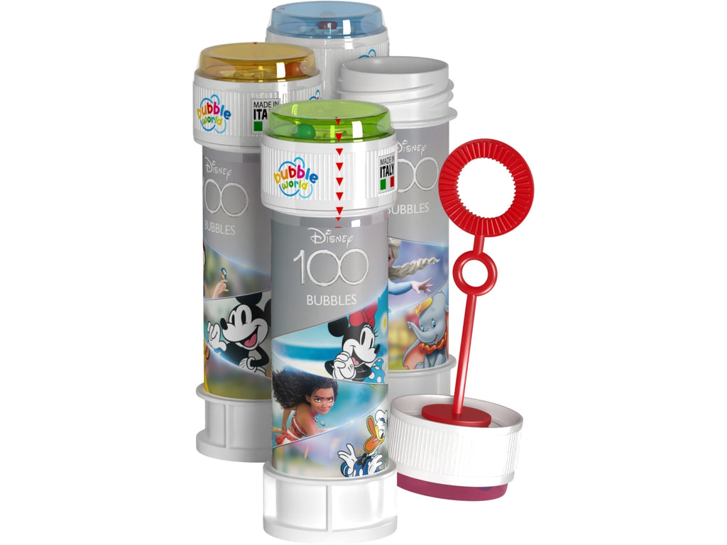 Bolle di sapone Disney d-100 da 60 ml adatte a far divertire bambini di eta' superiore ai 3 anni. Flacone riempibile e riutilizzabile.