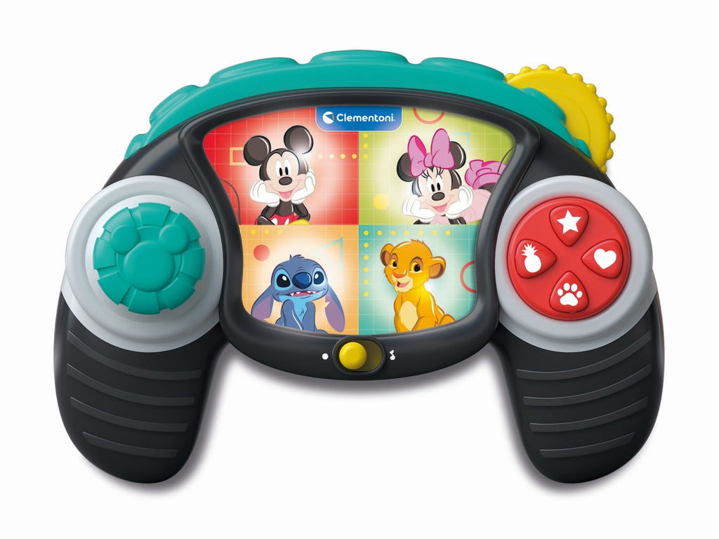 Un controller di gioco pensato per i più piccoli, per divertirsi con i personaggi Disney più amati! Con tante melodie, effetti sonori e giochi di luce. Il tasto e la leva interattivi e la rotella meccanica aiutano a esercitare la motricità fine. Il controller Disney favorisce il gioco imitativo grazie al design realistico. Adatto a bambini a partire da un anno di vita.