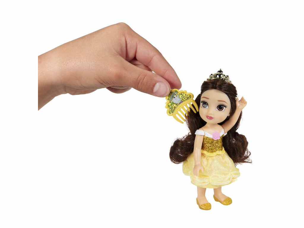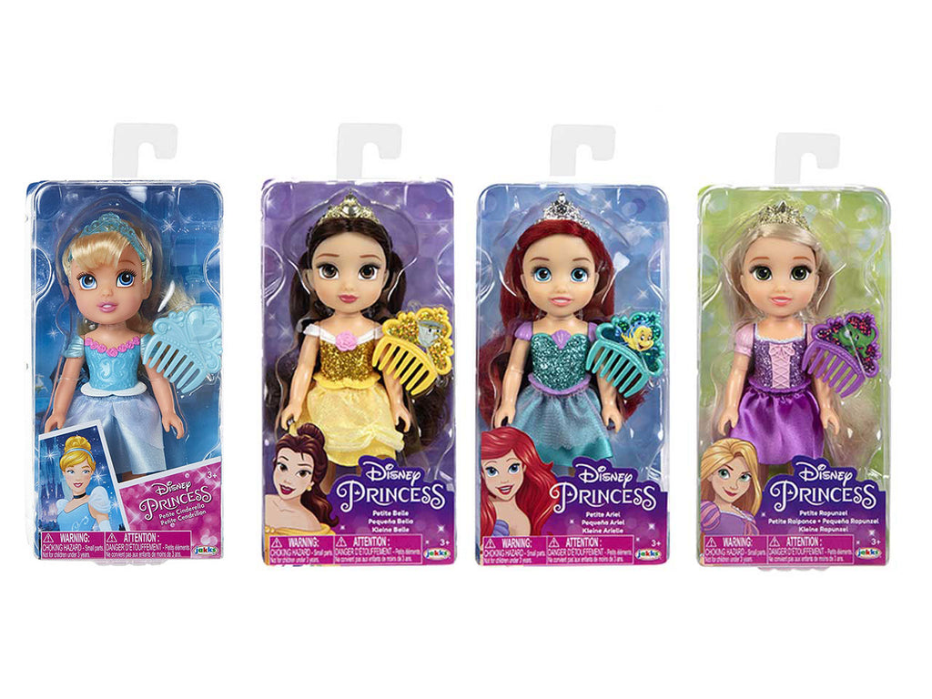 Vivi la magia delle Disney Princess! Le Petite sono alte 15 cm e indossano graziosi abiti, scintillanti scarpette e coroncine, e i loro lunghi capelli sono pettinabili grazie al pettinino incluso.