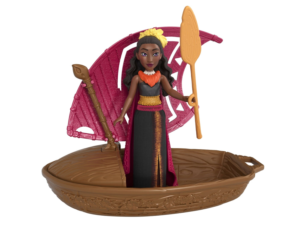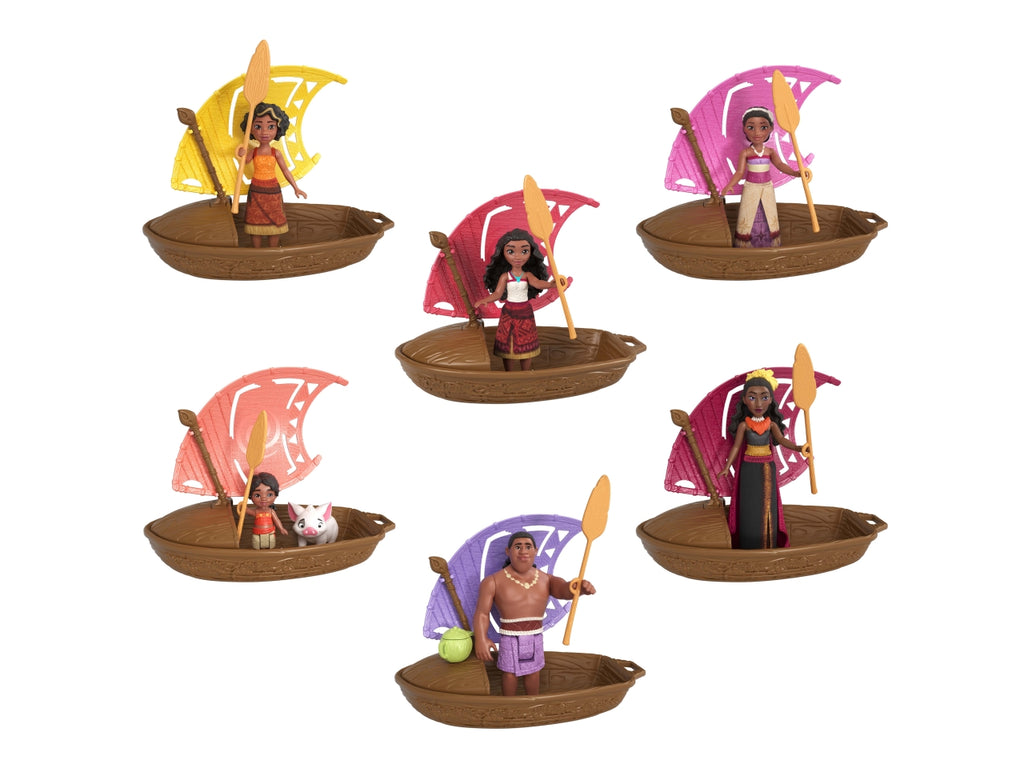 Scopri una sorpresa all'interno di ogni set di mini bambole Meraviglie dell'esplorazione ispirato a Oceania 2, il sequel del film originale Disney! Alza la vela e scopri una bambola all'interno della canoa. Monta la canoa e parti per un'avventura nell'oceano: galleggia davvero! I bambini possono collezionare Vaiana, alta circa 9 cm, la sorellina Simea, il misterioso semidio Matangi e altre mini bambole amate dai fan, ognuna con una vela di colore diverso e un remo esclusivo. Spiega le vele per giocare nella vasca da bagno e non solo, con una o tutte e sei le Meraviglie dell'esplorazione galleggianti! Ognuna in vendita separatamente, secondo disponibilità . Le bambole non possono reggersi in piedi da sole