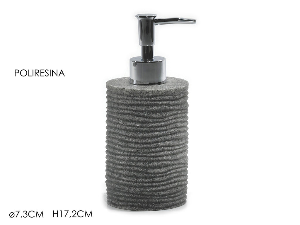 Realizzato in poliresina di colore grigio sasso, questo dispenser si distingue per il suo aspetto rilassante.