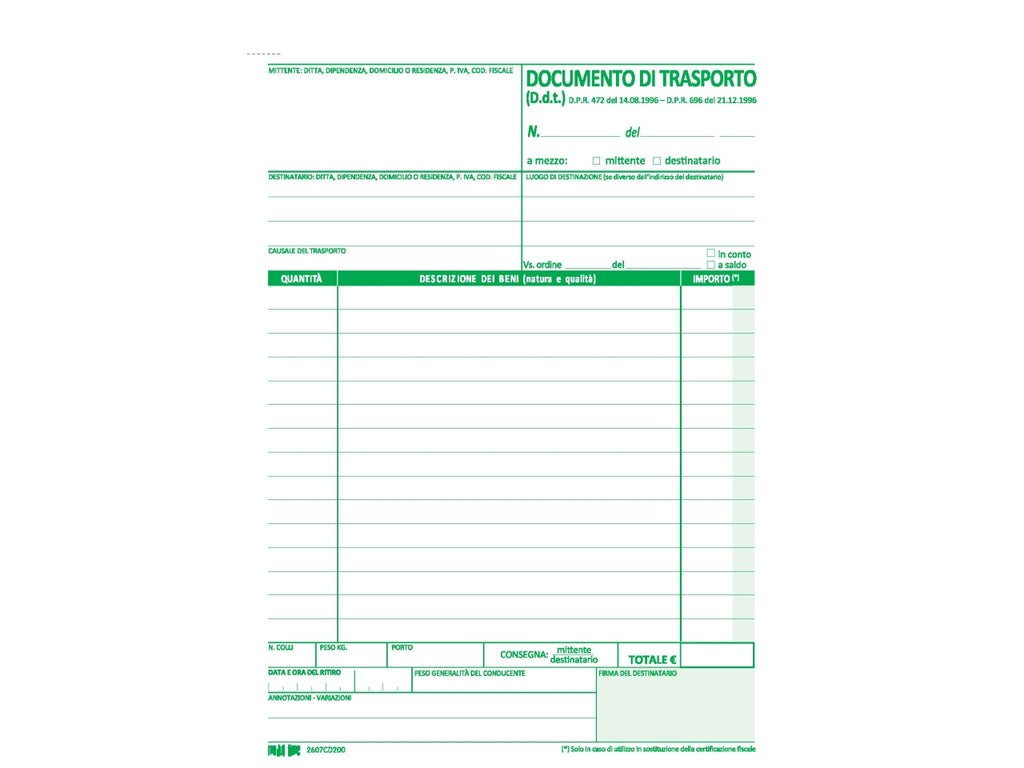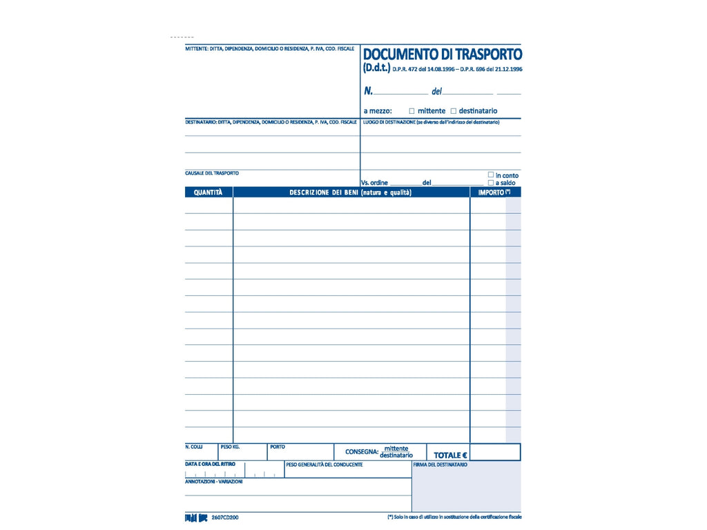 Documento di trasporto 50x2 copie autoricalcante 21,5x14,8cm