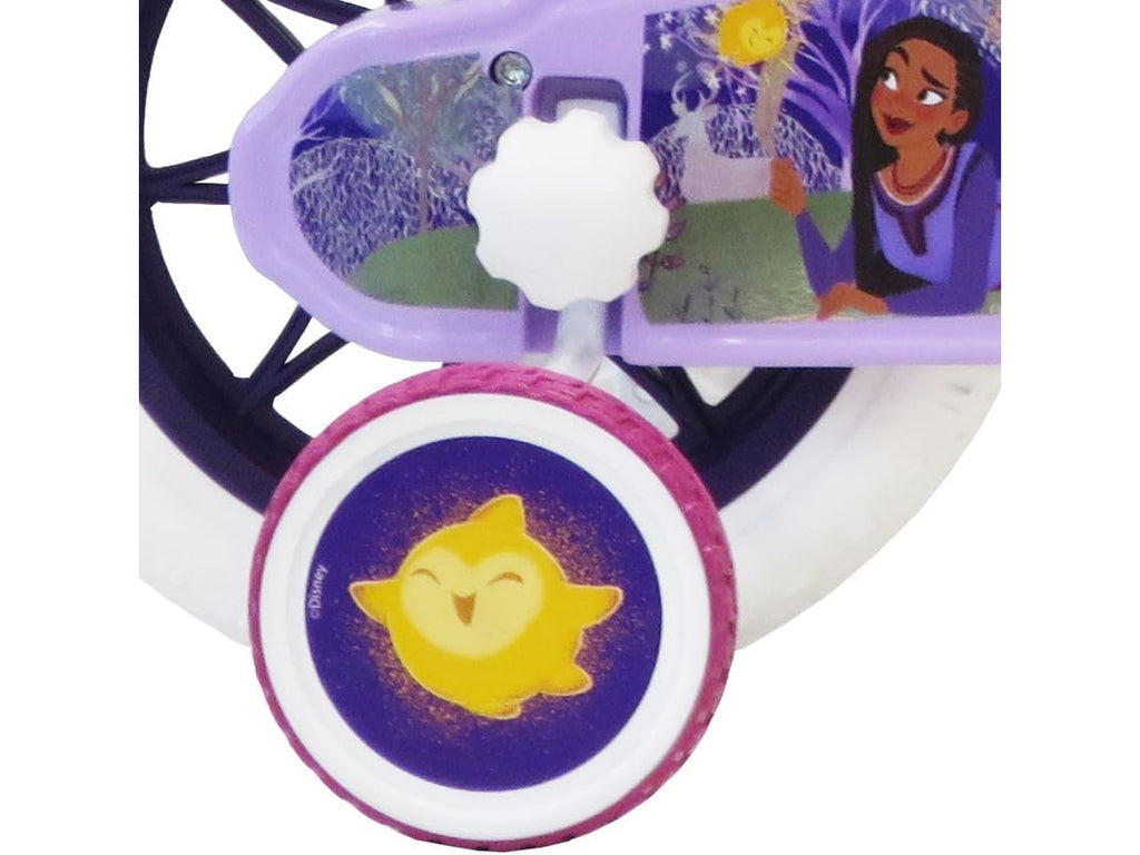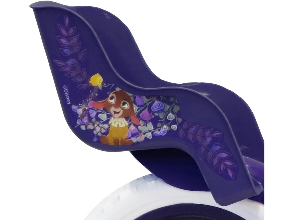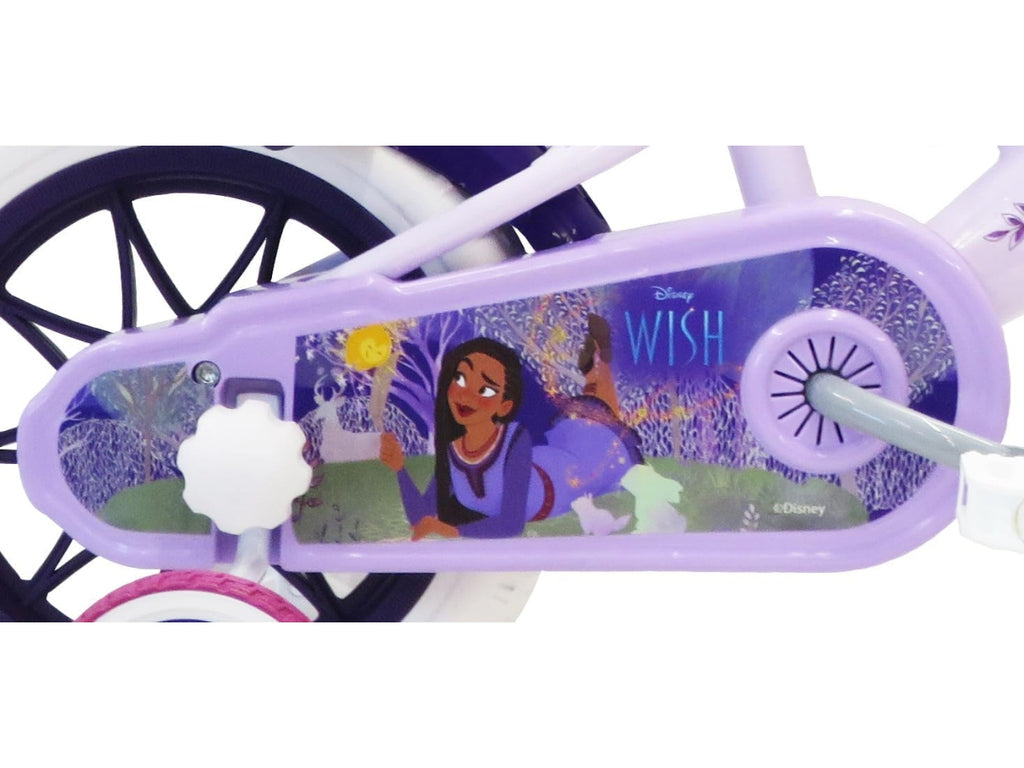 Telaio in metallo, cerchi in plastica, coperture morbide âEVAâ antiscivolo antiforature, ruota fissa, freno Caliper, cuscinetti in Nylon, parafanghi deluxe, rotelle Security Plus con personaggio, cestino anteriore, componenti in plastica rinforzati.