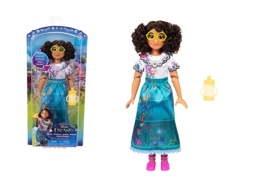 Ricrea i tuoi momenti preferiti del film e canta "Waiting on a Miracle" con questa bambola Mirabel che canta. Alta 11 pollici, Mirabel indossa il suo abito caratteristico: il suo vestito presenta un bellissimo colletto smerlato e maniche con autentici disegni in stile ricamo colombiano. La sua lunga gonna verde acqua presenta icone colorate e motivi ispirati ai doni magici della sua famiglia, proprio come in il film! I suoi iconici occhiali verdi, gli orecchini con pompon viola e le scarpe espadrillas magenta completano il suo look classico. Viene fornita anche con la magica candela della famiglia Madrigal, direttamente dalla storia! Metti la candela nelle mani di Mirabel per inscenare la tua storia preferita. Unisciti alla tua nuova amica Mirabel in un'avventura per salvare la magia della sua famiglia!