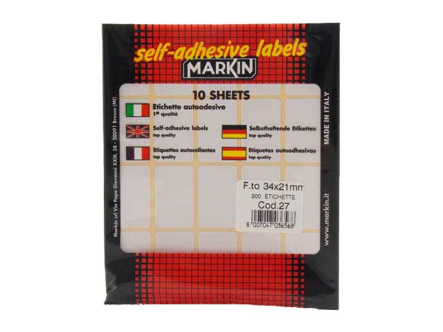 Etichette autoadesive confezionate in buste da 10 fogli, appendibili, in scatola da 25 buste Vuoi esporre il prezzo dei tuoi prodotti ma non trovi la soluzione adatta alle tue esigenze ? Un consiglio te lo diamo noi: Le nostre pratiche e innovative etichette adesive 37x19mm sono ciò che fa al caso tuo. Dal pratico formato, la nostra etichetta autoadesiva risulta essere perfetta per esaltare il prezzo anche dalla distanza, infatti, è possibile attaccarla con il suo adesivo su qualsiasi superficie, rendendola ben visibile in qualsiasi posizione essa venga posizionata. -Etichetta autoadesiva -Formato pratico ed elegante