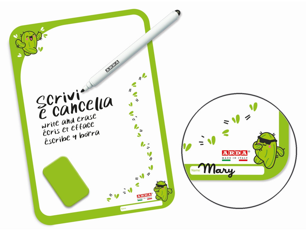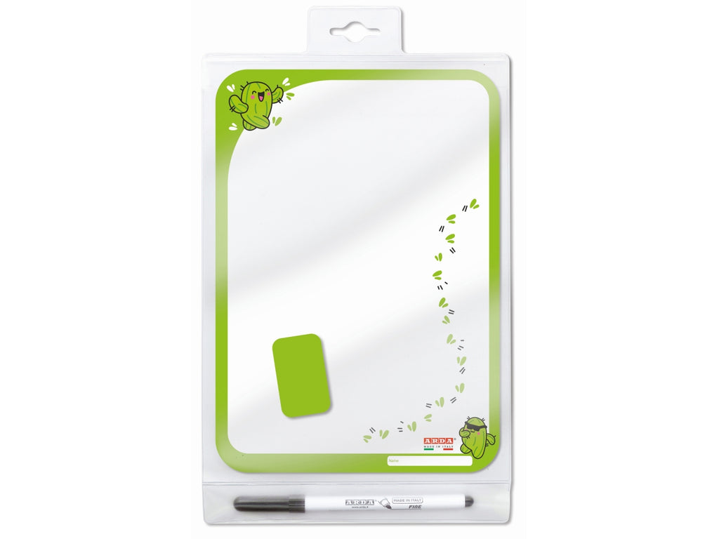 La lavagna bifacciale Fancy è uno strumento colorato e funzionale pensato per l’ambiente scolastico e l’uso domestico. Realizzata in cartoncino plastificato, è priva di cornice per un design più leggero e pratico. La superficie anteriore è decorata con illustrazioni divertenti e variopinte, mentre il retro è completamente bianco, ideale per scrivere o disegnare liberamente. Ogni confezione include un pennarello cancellabile e un cancellino, offrendo tutto il necessario per un utilizzo immediato e creativo. Il formato compatto 18x26 cm la rende perfetta per essere riposta nello zaino o sulla scrivania. Disponibile in diversi soggetti assortiti.