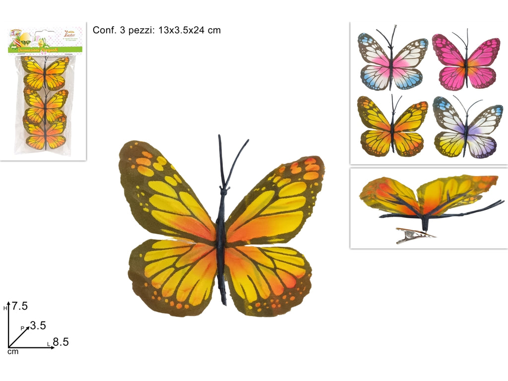 Farfalle set da 3 farfalle con pinzetta in 3 colori assortiti
