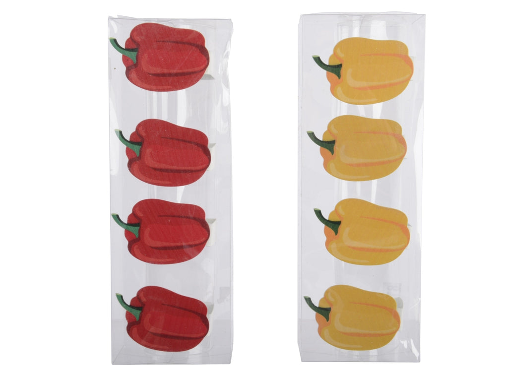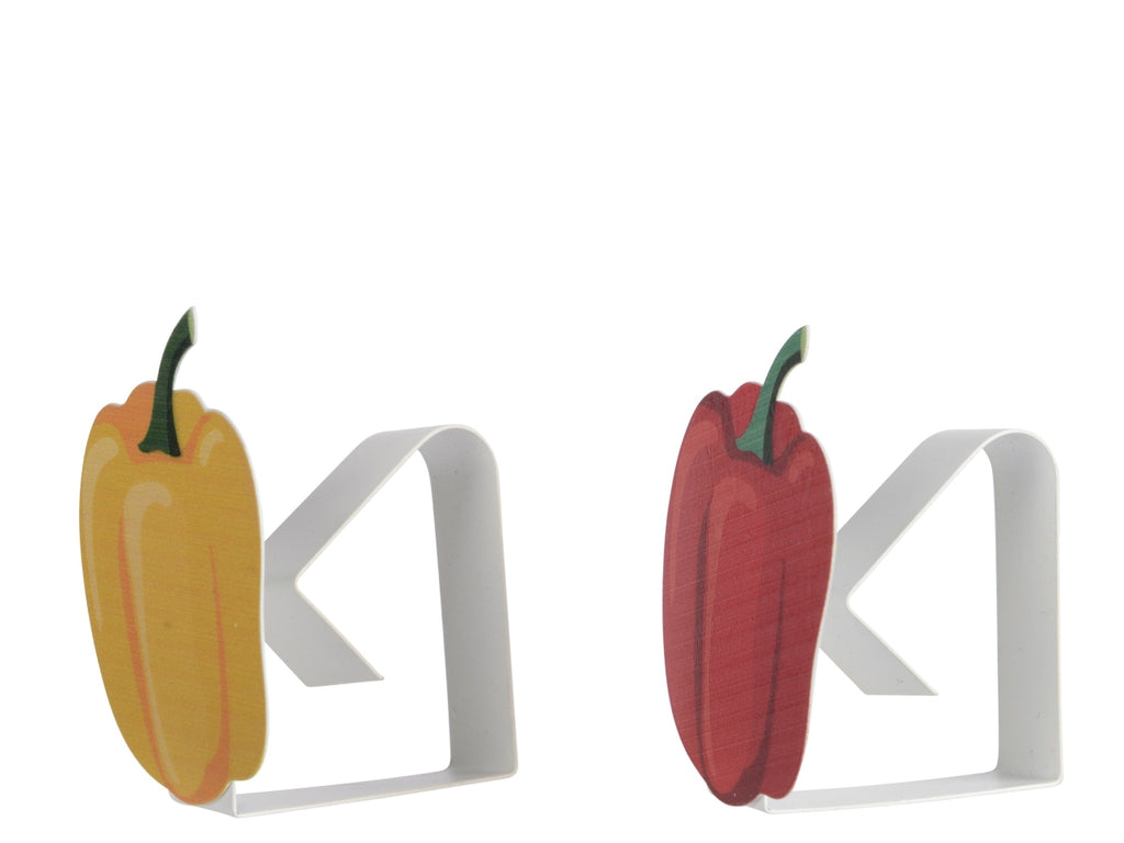 Aggiungi un tocco giocoso ai tuoi interni con questo versatile set di clip Decoris. Le clip hanno la forma di peperoni colorati e sono realizzate in robusto ferro, che conferisce loro un aspetto robusto e contemporaneo. Grazie alle dimensioni compatte di 4 x 6,2 x 4,5 cm, si adattano facilmente a diversi spazi, come decorazioni per finestre, lavagne o ghirlande di nastri. Questi accessori aggiungono un tocco di allegria alla tua elegante tavola o al tuo spazio di lavoro.