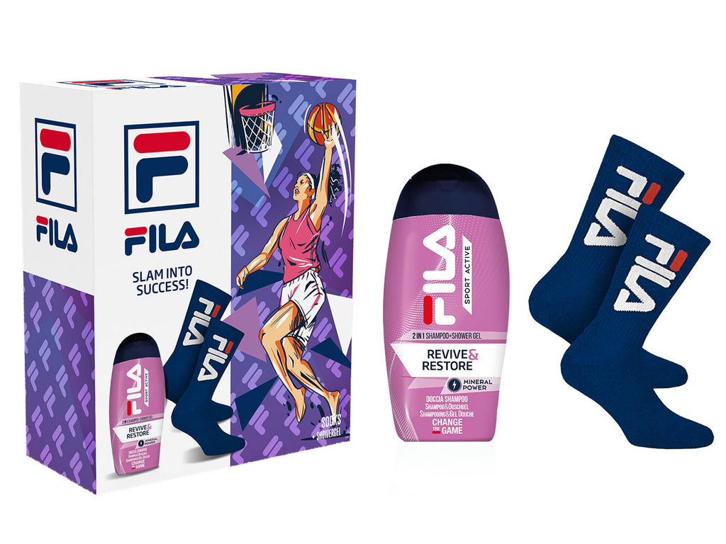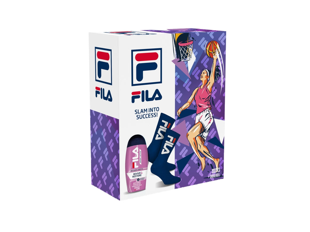Cofanetto regalo FILA per donna con Showergel Rehydrate&Protect e calzini grigi FILA