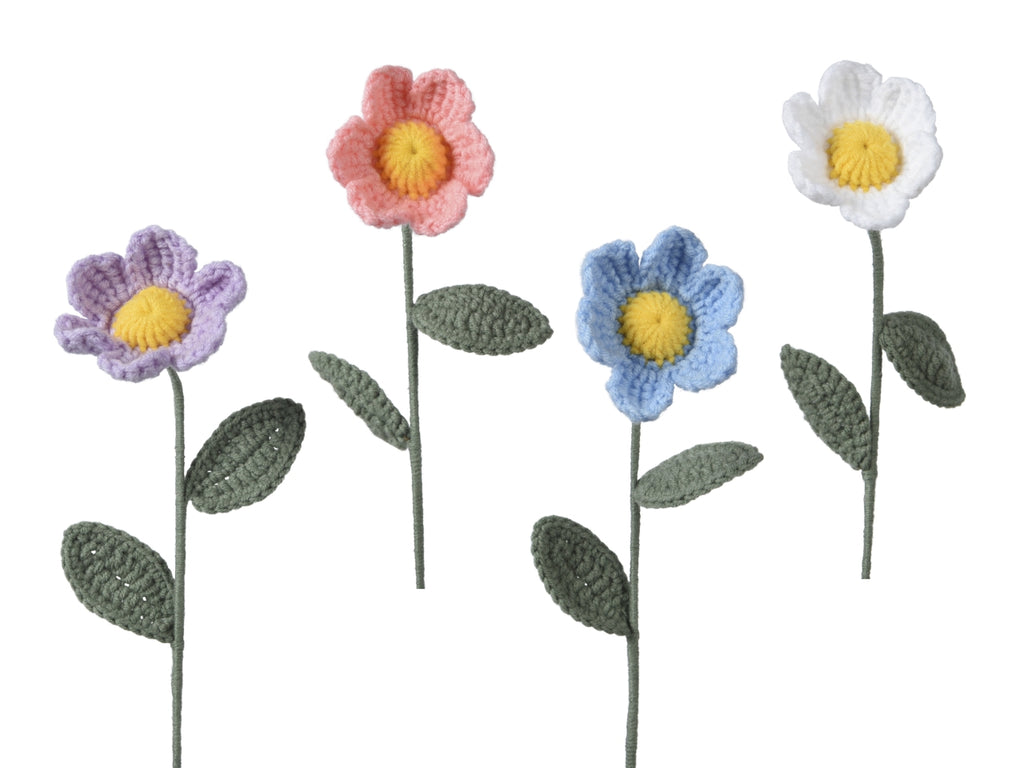 Fiore in poliestere lavorato a maglia h.30xd.7cm disponibile in 4 colori diversi