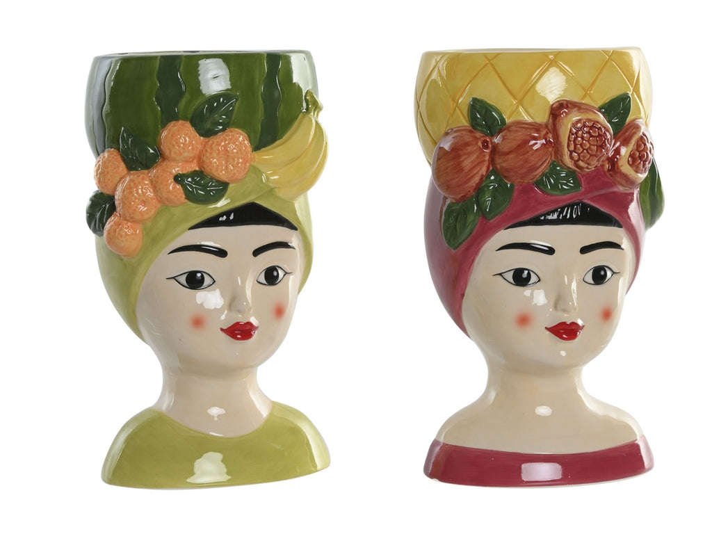 Fioriera disegno ragazza in ceramica 13x13x22cm in 2 modelli assortiti