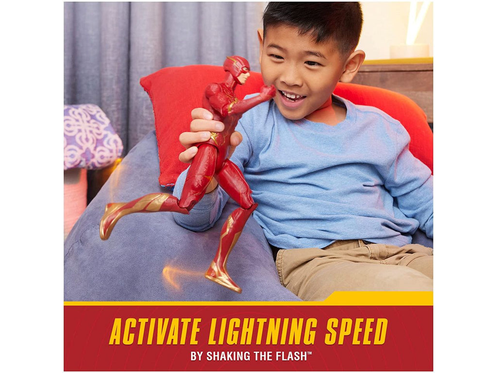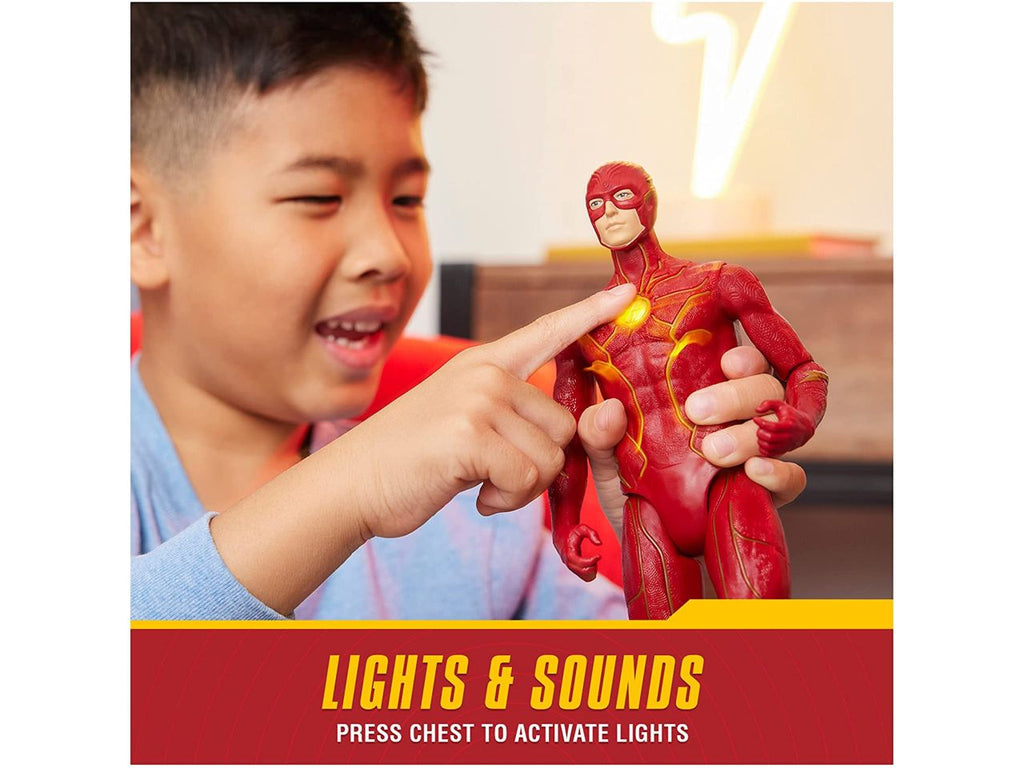 Personaggio di flash deluxe da 30 cm, personaggio 30 cm con 11 punti di articolazione, luci ed oltre 15 suoni, giocattolo per bambini dai 4 anni in su con pile incluse.sfreccia in azione a velocità  supersonica con il personaggio di flash deluxe da 30 cm con luci e suoni. questo personaggio da 30 cm è dotato di uno stile fedele al film, luci, suoni e 11 punti di articolazione. sblocca la velocità  fulminea di flash premendo il torace. guardalo illuminarsi ed entrare in modalità  corsa. scuoti il personaggio per attivare luci e suoni. i bambini adorano giocare con l'immaginazione e creare battaglie tra flash e i nemici. scopri se sarai in grado di salvare il pianeta. grazie all'ampia gamma di personaggi da collezionare del film the flash, puoi espandere la collezione di action figure dc con flash, dark flash, batman e tanti altri (ciascuno in vendita separatamente). à un'ottima idea regalo per i bambini fan di flash e batman e gli appassionati di supereroi.