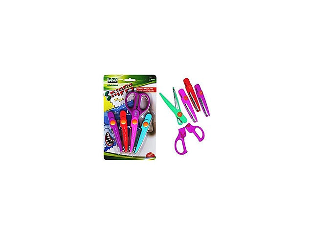 Forbici snippy zig-zag, 4 lame in metallo, con 4 formati di taglio intercambiabili, per bricolage 1 pezzo colori assortiti 16cm, brand lebez spa. Progettate per i bimbi più piccoli, le nostre forbici per la scuola ondulate sono il perfetto compromesso, in quanto a sicurezza e affidabilità . Dalla punta arrotondata e dal taglio sicuro, sono indispensabili per lapprendimento dei più piccoli. Le nostre forbici scuola sono adatte a tagliare cartoncini e fogli, hanno una presa facilitata, ed un ergonomia disegnata per chi inizia ad apprendere il loro utilizzo. Per tutti i negozianti di cartolibrerie, le forbici Lebez a punta arrotondata ed ondulata sono l'articolo perfetto da avere immediatamente nel tuo magazzino prodotti.