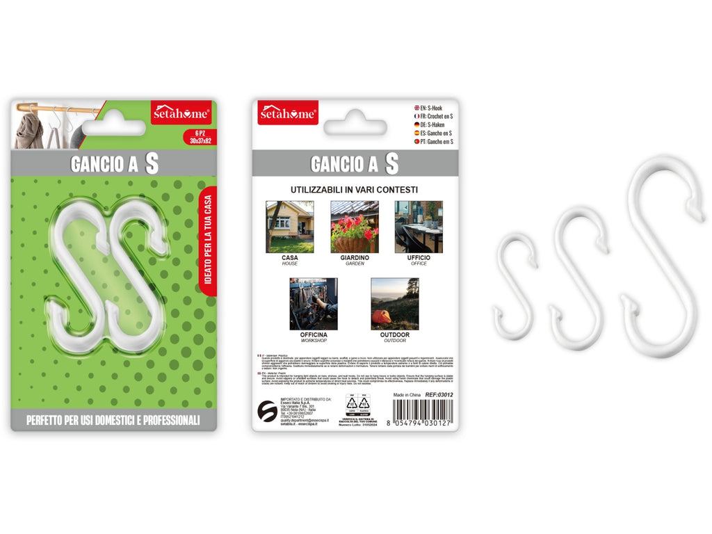 Gancio a s in plastica 30x37x82mm confezione da 6 ganci
