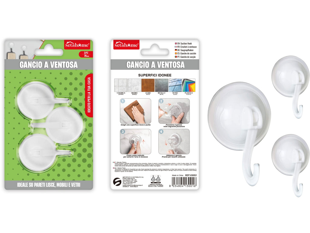 Gancio a ventosa rotondo 35mm confezione da 3 ganci