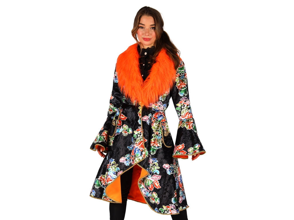 Giacca donna a fantasia con collo di pelliccia arancio taglia M