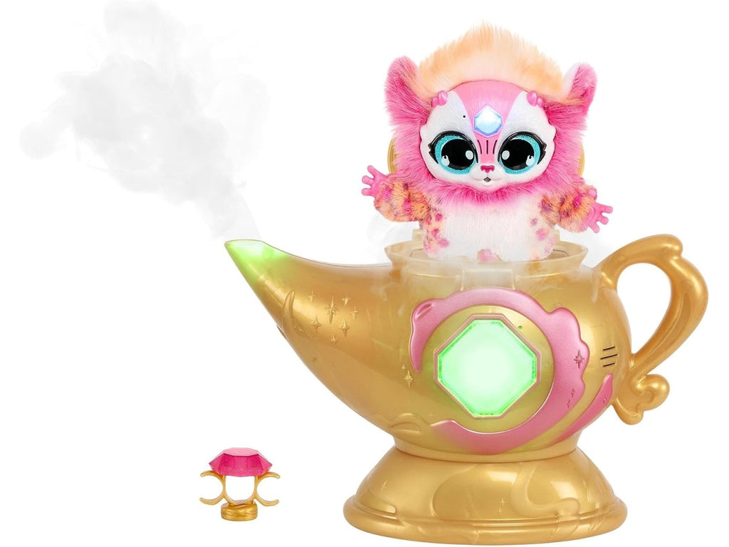 Pronti per entrare nel mondo della magia con la nuova magic lamp? completando il processo di creazione si sblocca un tesoro a sorpresa: lanello magico! e' composto da due diversi elementi e può essere usato per esprimere il desiderio di incontrare un simpatico amico magico! basta sfregare la lampada ad ogni passaggio per creare, poco alla volta, il cucciolo nascosto! il cucciolo apparirà  dalla lampada magica per esaudire i desideri. con oltre 60 luci e suoni e un fantastico effetto nebbia. peluche interattivo e anello magico allinterno da scoprire! gioco ripetibile più volte.