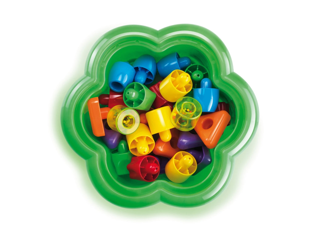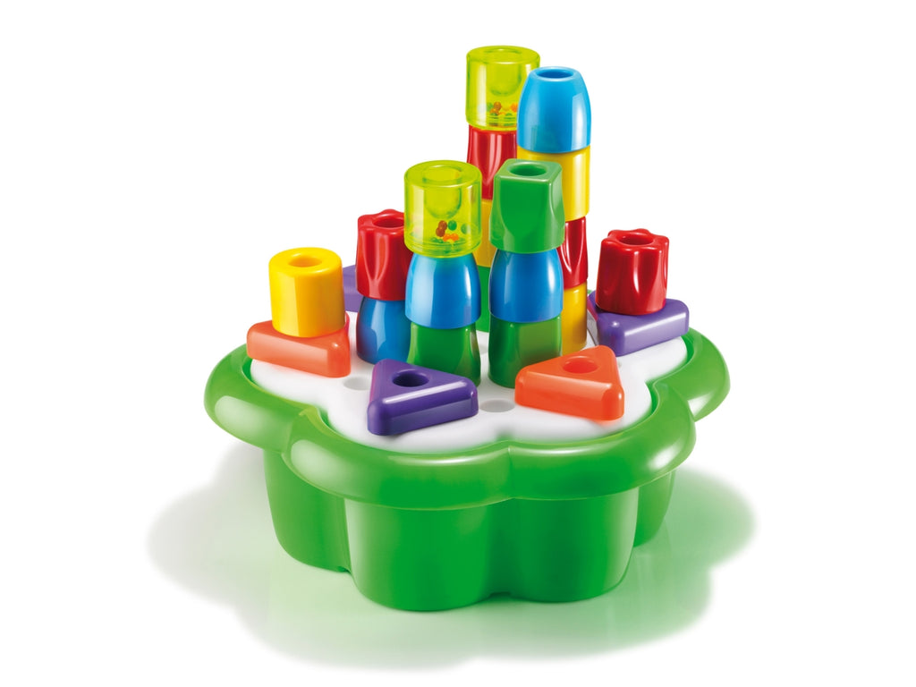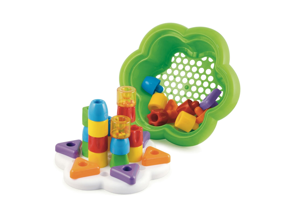 Con Chunky Peggy, grazie al suo design fatto di forme grandi e arrotondate ed ai materiali morbidi impiegati, sarà facile e divertente riempire i buchi della margherita con i grandi chiodi o magari costruire torri sempre più alte e diverse in piena sicurezza. Le forme dei chiodoni ed i colori sono opportunamente differenziati per favorire e stimolare la percezione visiva, la coordinazione occhio-mano e per sviluppare efficacemente la destrezza manipolativa. Un grande secchiello, poi, a forma di fiore, che accoglie comodamente tutti i pezzi dopo aver giocato ed un paio di simpatici sonagli a forma di chiodo, completano l'offerta di questo giocattolo dedicato espressamente alle esigenze di crescita dei bambini più piccoli.