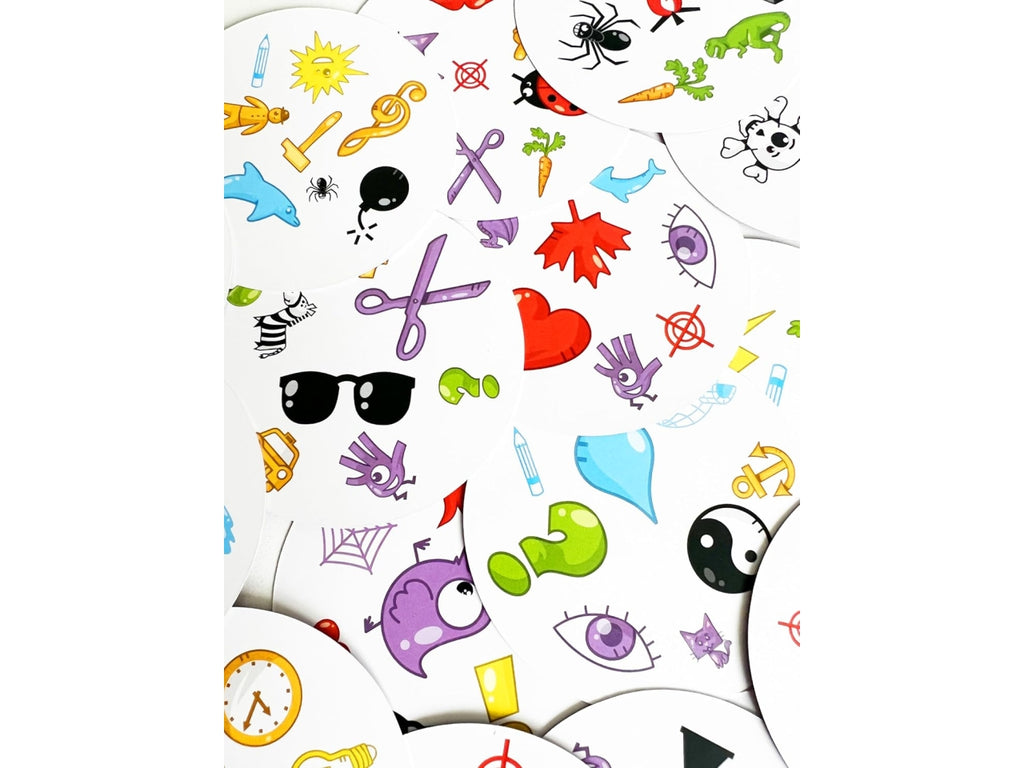 Dobble è un gioco di colpo d'occhio e velocità: per vincere dovrete essere i più rapidi a trovare l'unico simbolo in comune tra le carte svelate (ce n’è sempre uno), 5 mini giochi per partite sempre diverse ed entusiasmanti.